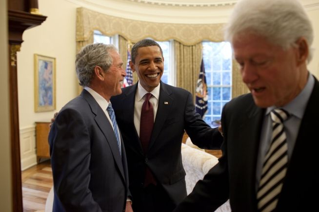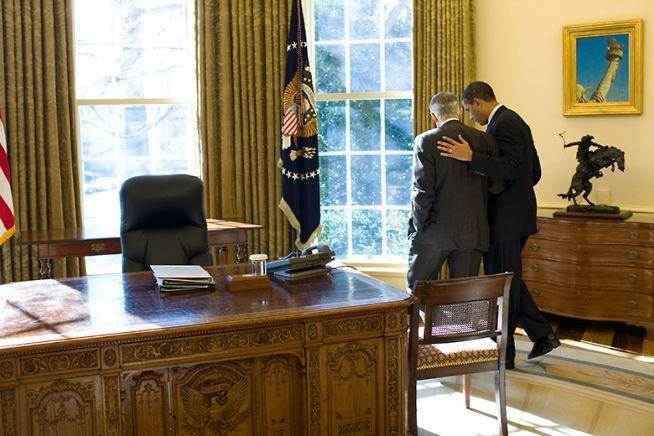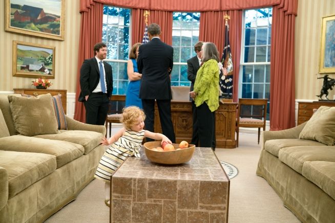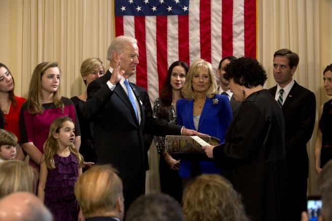 Twenty-one-month-old Lillian McNally reaches for an apple as President Barack Obama visits with her mother, Amanda Anderson, Office of Legislative Affairs and father Matthew McNally, left. in the Oval Office, Oct. 8, 2015. Also attending Amanda's departure ceremony are her parents, William and Catherine Anderson and Logan Anderson, her three-year-old nephew. (Official White House Photo by Pete Souza) (21個(gè)月大的Lillian McNally正在拿一個(gè)蘋果。此時(shí),總統(tǒng)奧巴馬正在和她的媽媽,在立法事務(wù)辦公室任職的Amanda Anderson和爸爸Matthew McNally,位于左側(cè),在美國(guó)總統(tǒng)辦公室交談。參加Amanda離任儀式的還包括她的父母Willian和Catherine Anderson以及她三歲大的侄子Logan Anderson。拍攝時(shí)間為2015年10月8日,攝影師:Pete Souza) Jan. 23, 2009: President Obama talks alone with Senate Majority Leader Harry Reid in the Oval Office a few days after the inauguration. January 23, 2009. (Official White House Photo by Pete Souza) (2009年1月23日, 總統(tǒng)就職典禮已結(jié)束數(shù)日。總統(tǒng)奧巴馬在白宮總統(tǒng)辦公室與參議院多數(shù)黨領(lǐng)袖Harry Reid私下交談。攝影師:Pete Souza) President Barack Obama talks with former Presidents Bill Clinton and George W. Bush in the Oval Office, January 16, 2010. (Official White House Photo by Pete Souza) (總統(tǒng)奧巴馬與前總統(tǒng)比爾克林頓和喬治 W布什在總統(tǒng)白宮辦公室交談。拍攝時(shí)間:2010年1月16日,攝影師:Pete Souza) Supreme Court Justice Sonya Sotomayor administers the oath of office to Vice President Joe Biden during the official swearing-in ceremony at the Naval Observatory Residence in Washington, D.C., Jan. 20, 2013. Dr. Jill Biden, holding the Biden family Bible, and members of the Biden family surround the Vice President. (Official White House Photo by David Lienemann)(最高法院法官Sonya Sotomayor 在位于華盛頓特區(qū)的美國(guó)海軍天文臺(tái)為副總統(tǒng)Joe Biden舉辦就職宣誓儀式。Jill Biden博士拿著B(niǎo)iden家族的圣經(jīng),圍在副總統(tǒng)身邊的是其家人。攝影師:David Lienemann)